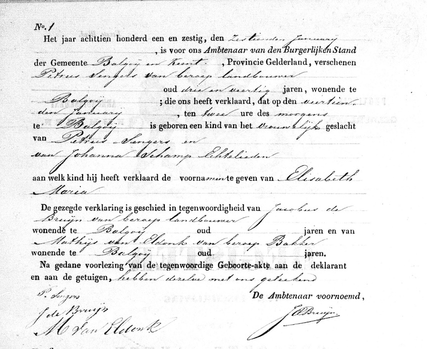 Elisabeth Maria Sengers geboorte