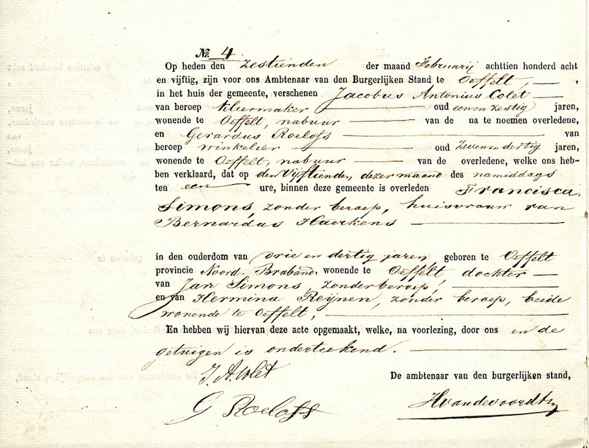 BHIC, overl. reg. Oeffelt 1858, akte 4