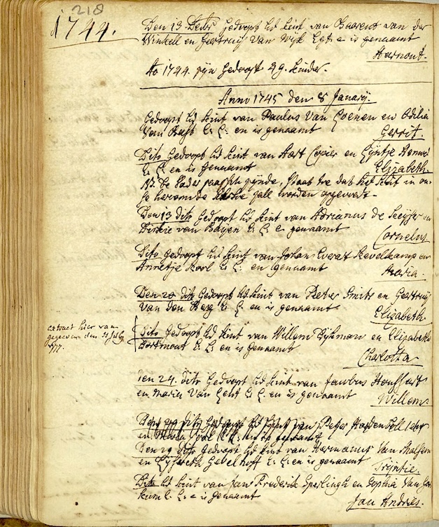 RAR, DTB Culemborg Herv. doopb. 1718-1752, inv. nr. 402 blz. 218