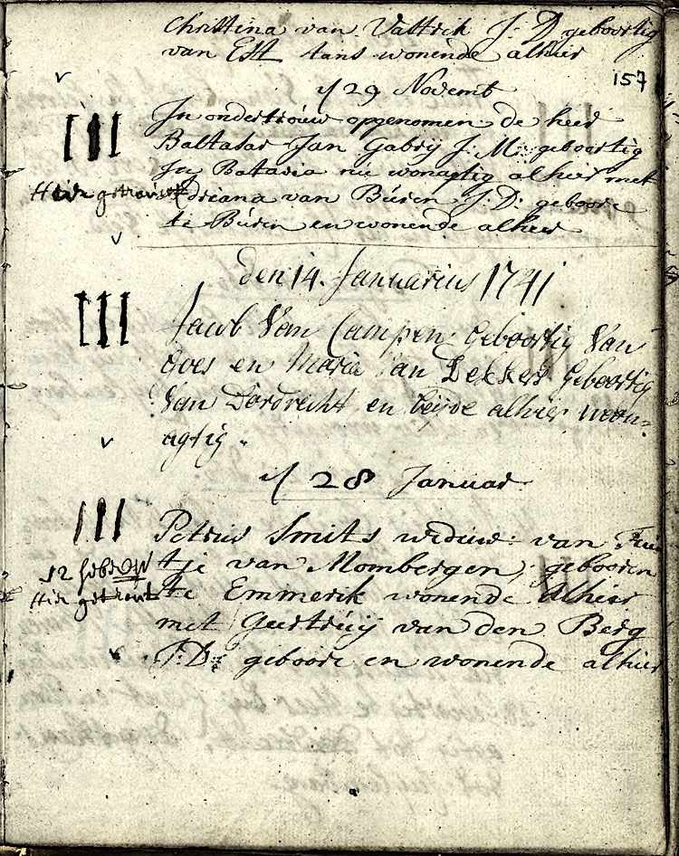 RAR, DTB Culemborg Herv. trouwb. 1716-1748, inv. nr. 2014 blz. 157