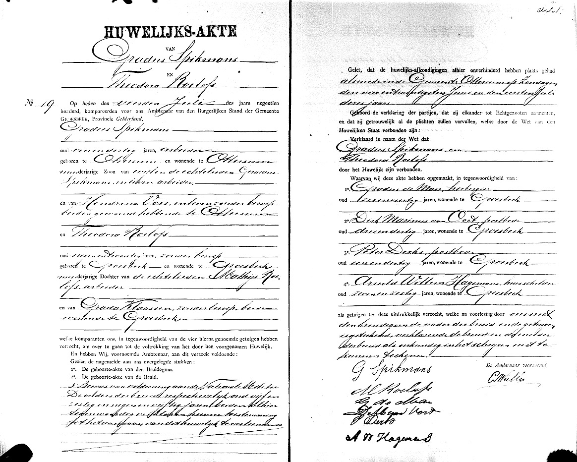 GldA, huw. reg. Groesbeek 1900, akte 19