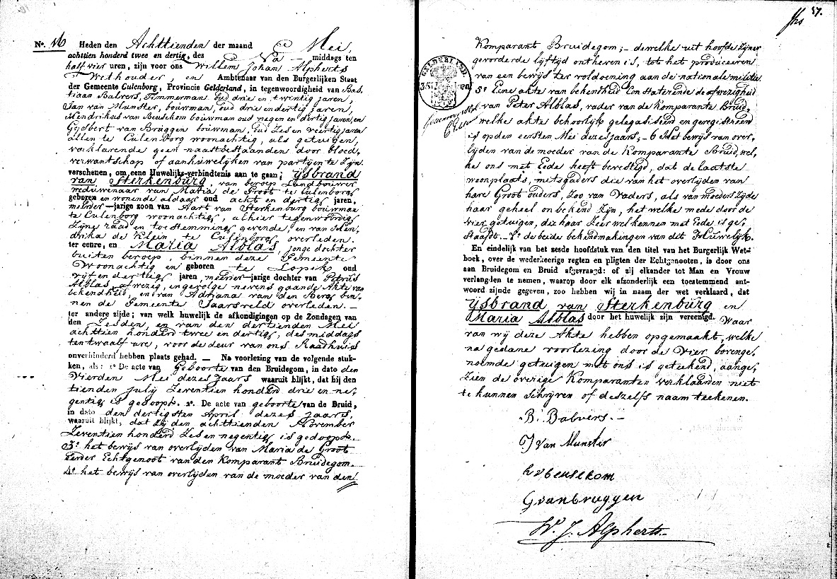 GeldA, huw. reg. Culemborg 1832, akte 16