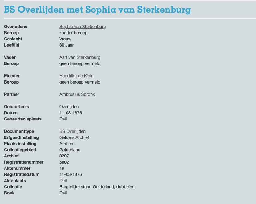 Sophia van Sterkenburg overlijden