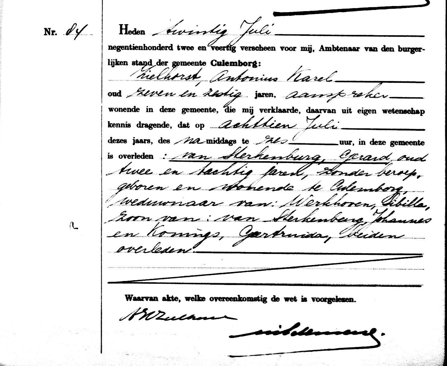 GeldA, overl. reg. Culemborg 1942 akte 84