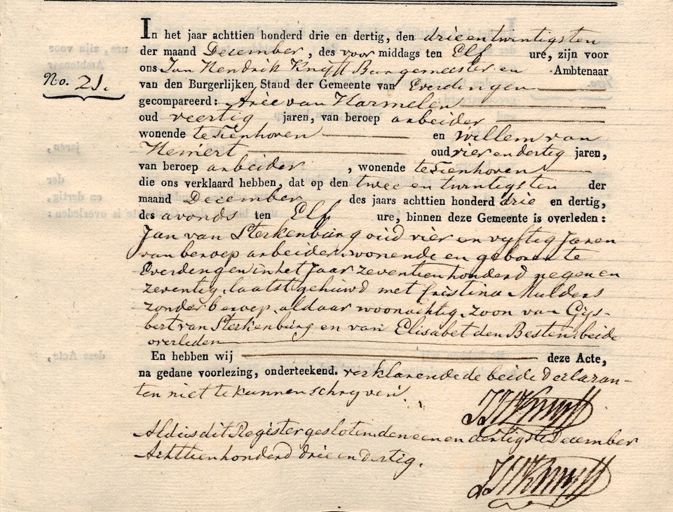 HUA, overl. reg. Everdingen 1833, akte 21
