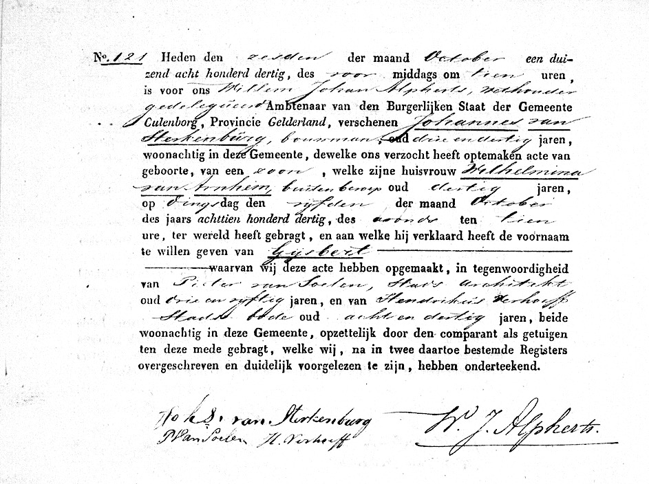 GldA, geb. reg. Culemborg 1830, akte 121