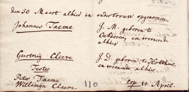 Vierlingsbeek huw. 14-04-1793 Johannes Taeme - Geertruij Cleeve