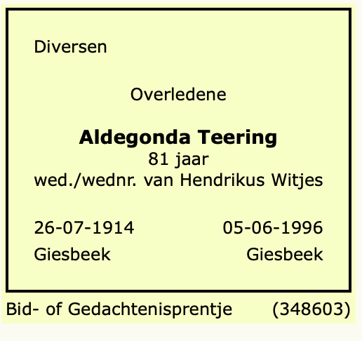 Aldegonda Teering overlijden