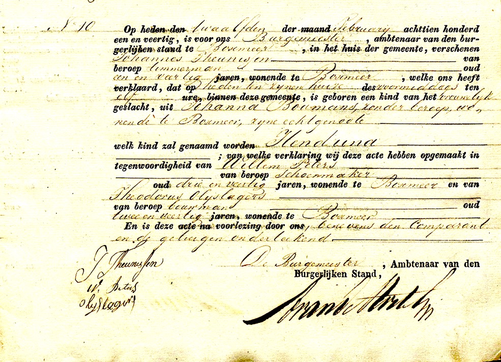Hendrina Theunissen geboorte