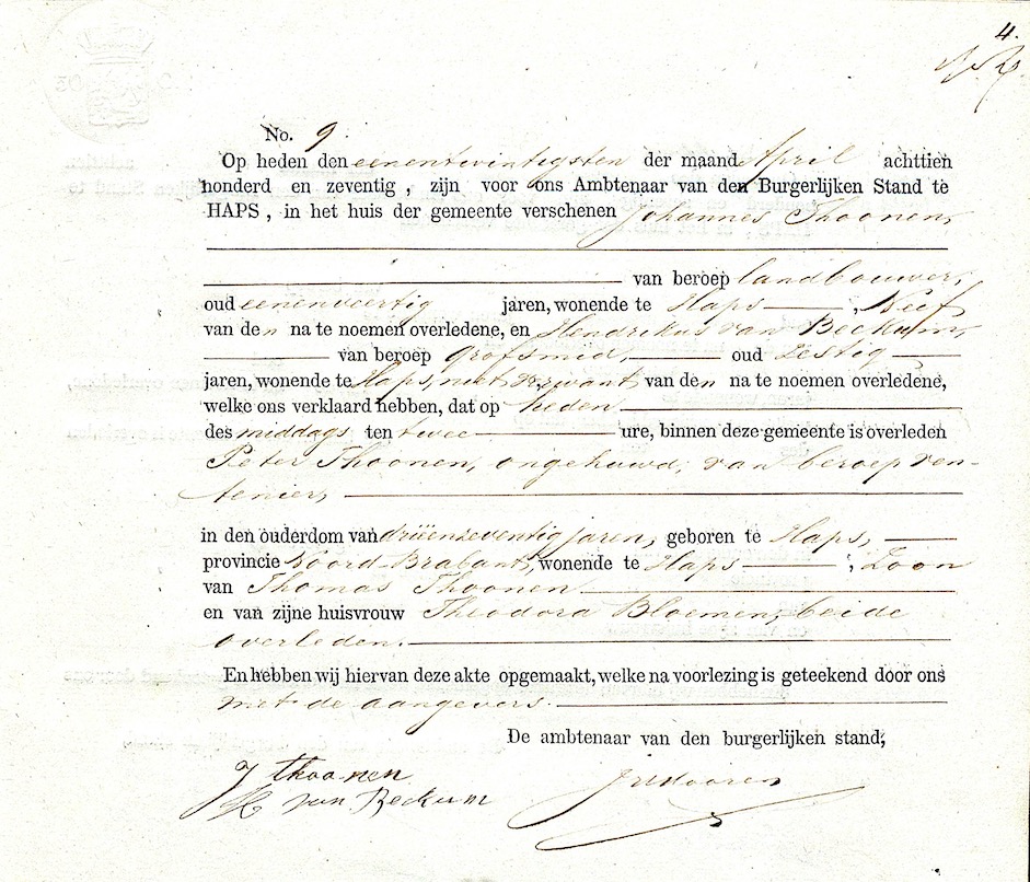 BHIC, ovl. reg. Haps 1870, akte 9