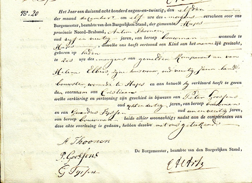 BHIC, geb. reg. Haps 1829, akte 20
