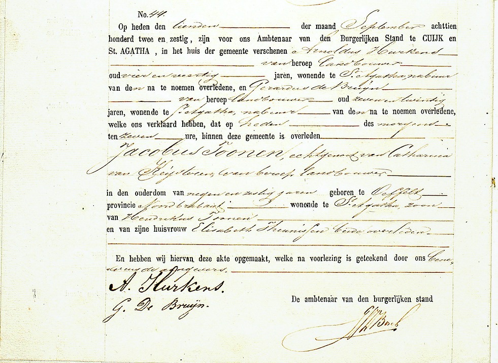 BHIC, ovl. reg. Cuijk en Sint Agatha 1862, akte 44