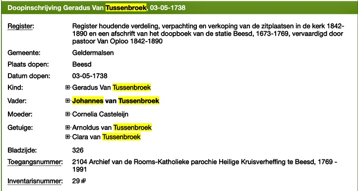 Gerardus van Tussenbroek doop