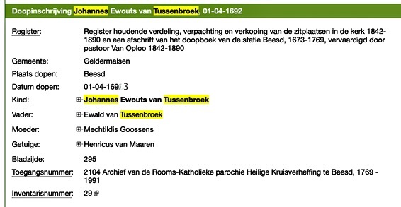 Johannes van Tussenbroek doop