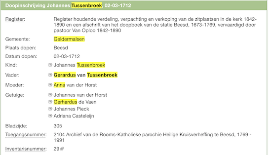 Johannes van Tussenbroek doop