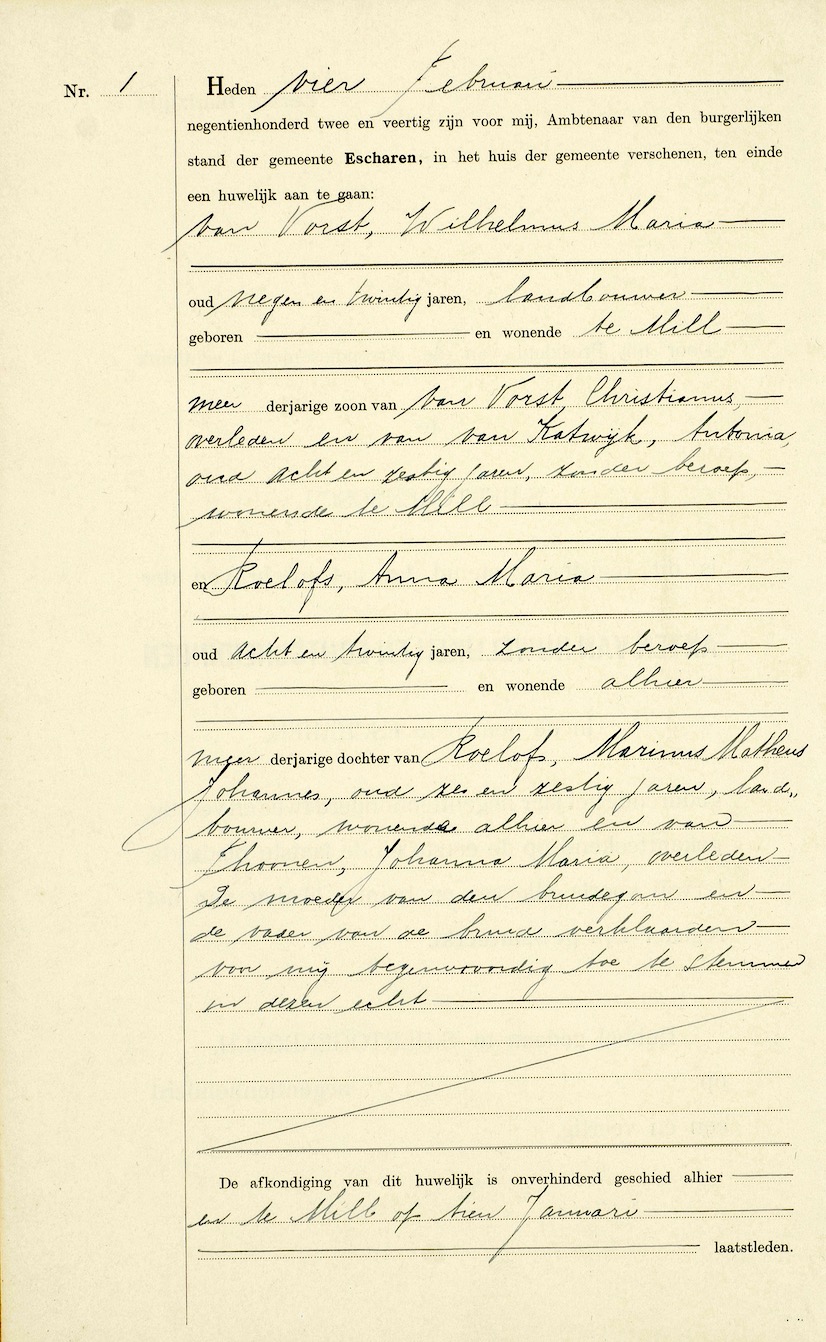 BHIC, huw. reg. Escharen 1942, akte 1