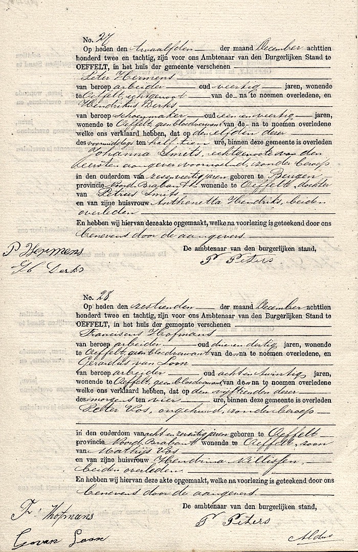 BHIC, ovl. reg. BS Oeffelt 1882, akte 28