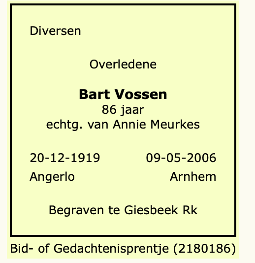 Hubertus Jacobus Vossen overlijden