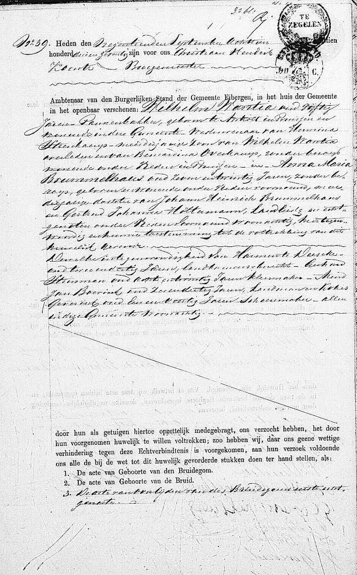 Eibergen huw. 19-09-1873 Wilhelm Wantia en Anna Maria Brummelhaus