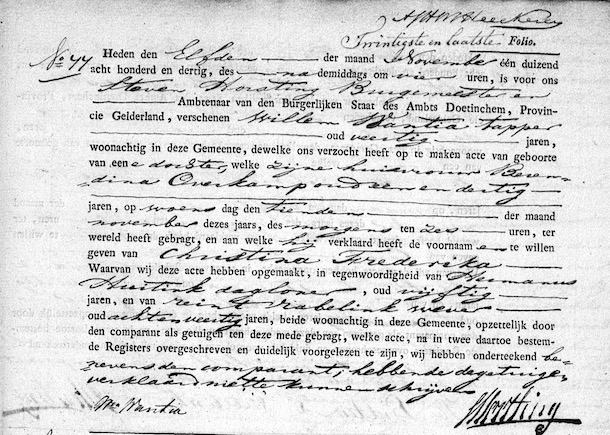 GldA, geb. reg. Doetinchem-Ambt 1830, akte 77