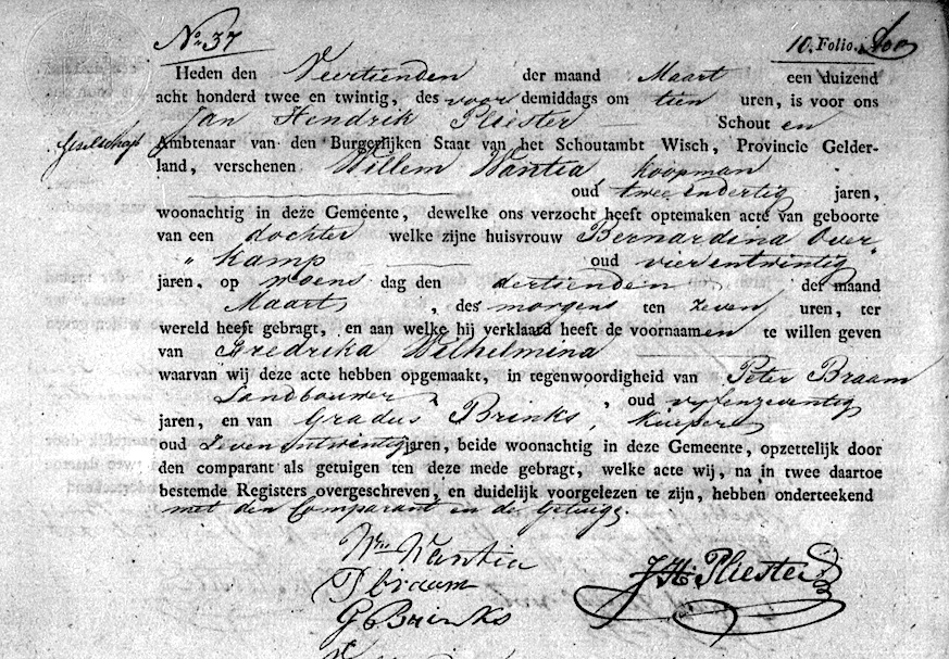 Frederika Wilhelmina Wantia geboorte