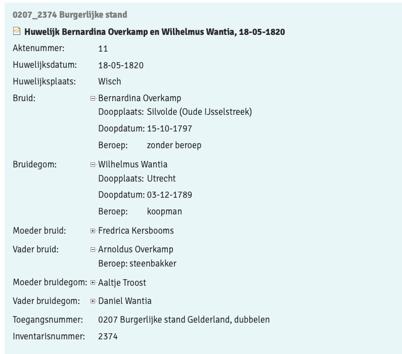 Wisch huw. 18-05-1820 Wilhelmus Wantia en Bernardina Overkamp