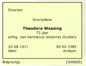 Theodora Wassing overlijden