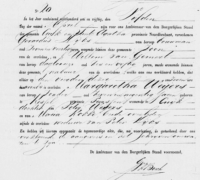 Fam. search, ovl. reg. Cuijk en Sint Agatha 1851, akte 20