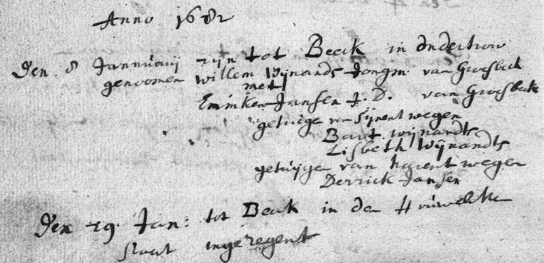 Beek-Ubbergen huw. 29-01-1682 Willem Wijnands en Emmken Jansen