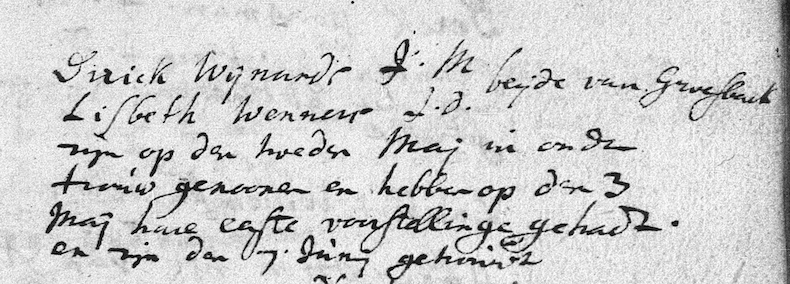 Beek-Ubbergen huw. 07-06-1685 Dirick Wijnands en Lisbeth Wanners