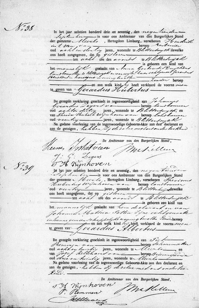 RHCL, geb. reg. Meerlo 1873, akte 39