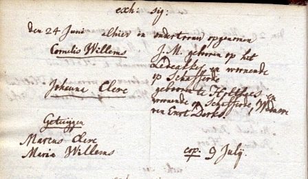 Vierlingsbeek huw. 09-07-1786 Cornelis Willems - Johanna Cleve