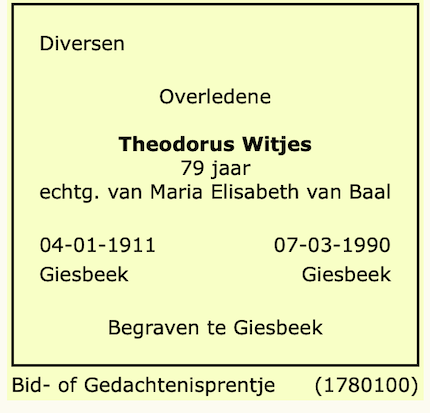Theodorus Witjes overlijden