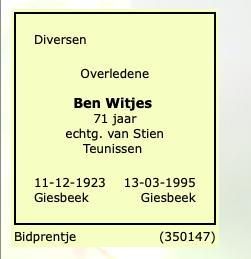 Bernardus Wilhelmus Witjes overlijden