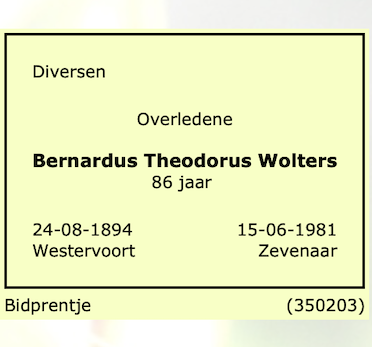 Bernardus Theodorus Wolters overlijden