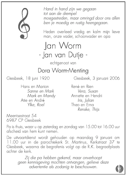 Johannes Bernardus Worm overlijden