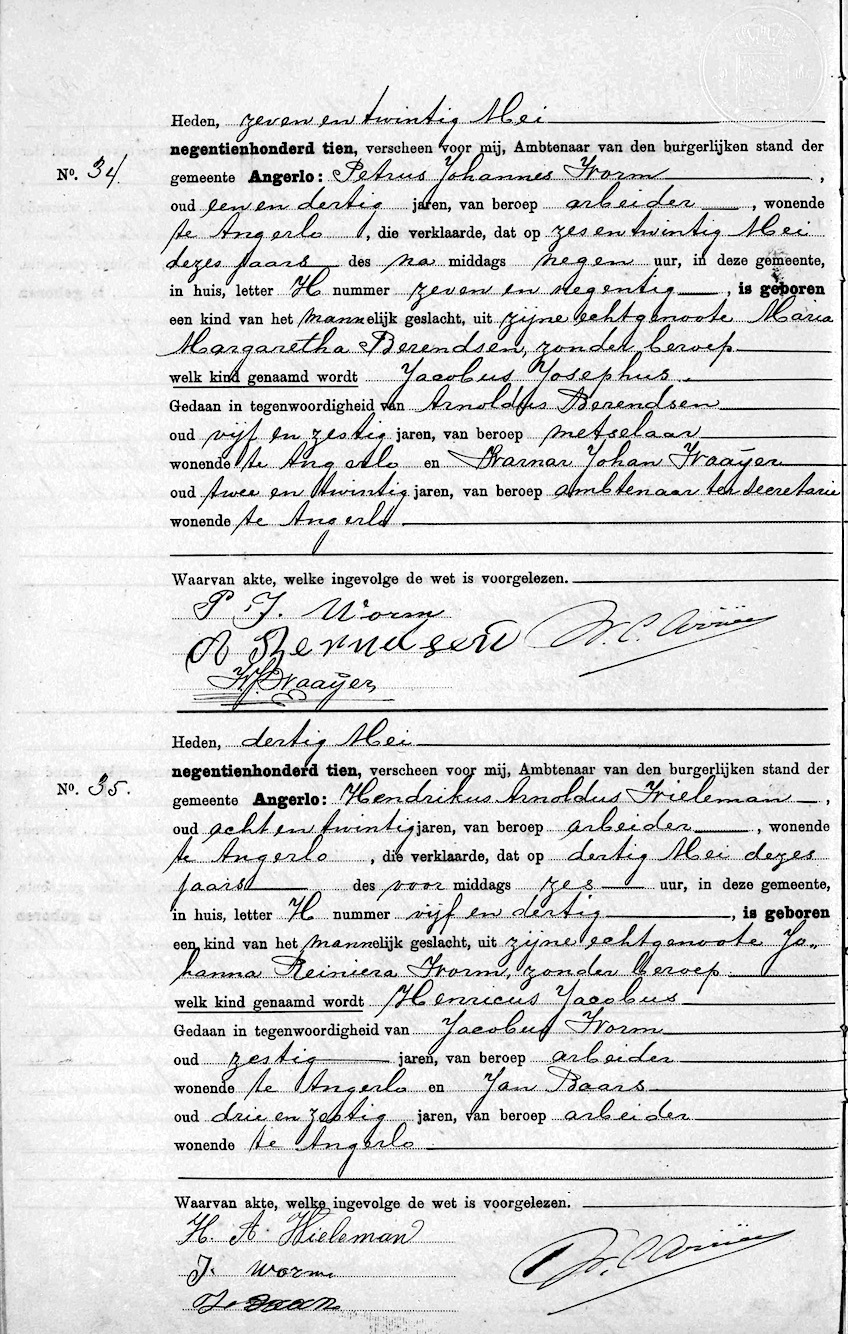 GeldA, geb. reg. Angerlo 1910, akte 34