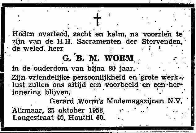 Gerardus Benedictus Maria Worm overlijden