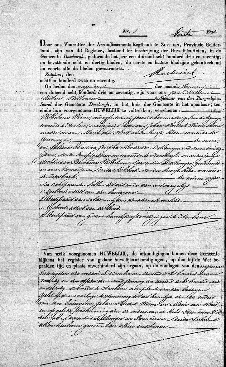 Doesburg huw. 09-01-1873 Wilhelmus Worm en Julia Ch. J. H. Dellemijn