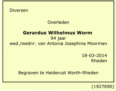 Gerardus Wilhelmus Worm overlijden