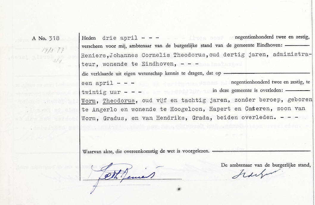 RHCE, overl reg. Eindhoven 1962, akte 318