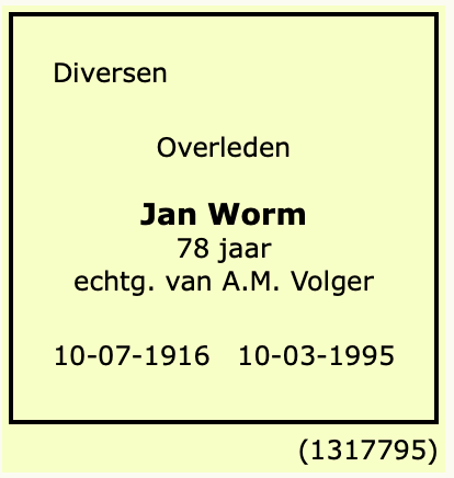 Johannes Bernardus Benedictus Maria Worm overlijden