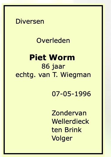 Petrus Johannes Franciscus Maria Worm overlijden