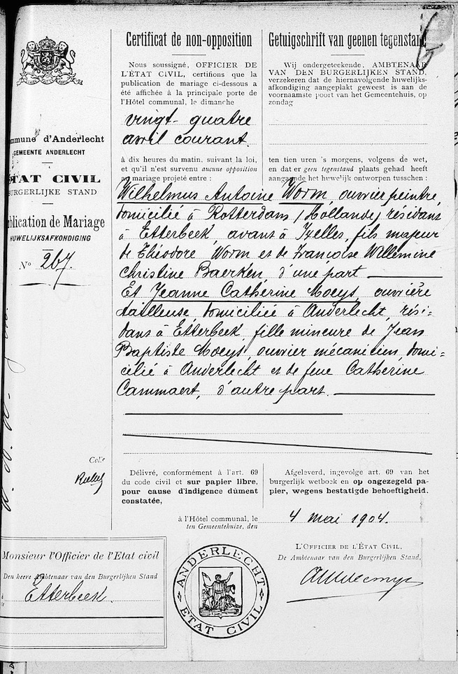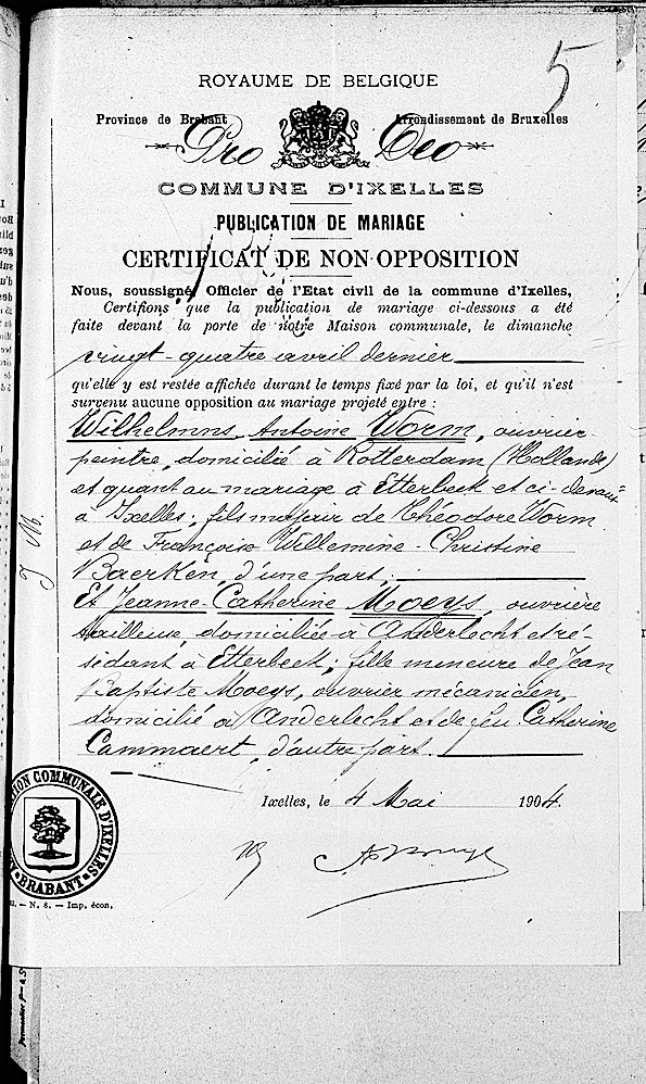 Burgerlijke stand Brussel, Leuven, inventarisĀnumĀmer 84856 / 0_0504, 14 mei 1904, aktenummer 65