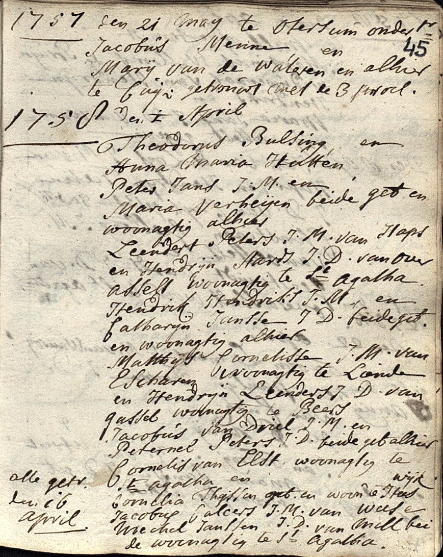 BHIC, DTB Cuijk RK trouwb. 1730-1762, inv. nr. 15 folio/pag. 45
