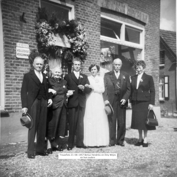 | Partner | Everdina Maria WitjesEverdina Maria (Diny) Witjes ![]() * 09-09-1931 Giesbeek Gem. Angerlo † 21-07-2020 Zevenaar ∞ Albertus Johannes Hendrikus (Bertus) Hendriks, 21-08-1957 Giesbeek Gem. Angerlo |