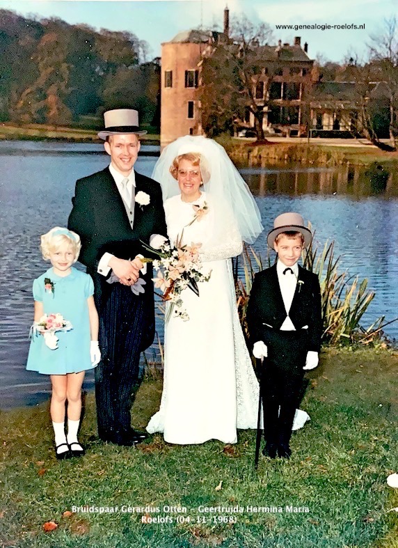 | Partner | Gerardus Johannes Alphonsus OttenGerardus Johannes Alphonsus (Gerard) Otten ![]() * 23-09-1938 Oosterbeek † 19-08-2021 Oosterbeek ∞ Geertruida Hermina Maria (Gerda) Roelofs, 04-11-1968 Velp Gem. Rheden, 2 kinderen |