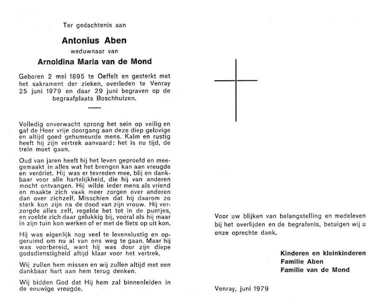 Antonius Aben overlijden