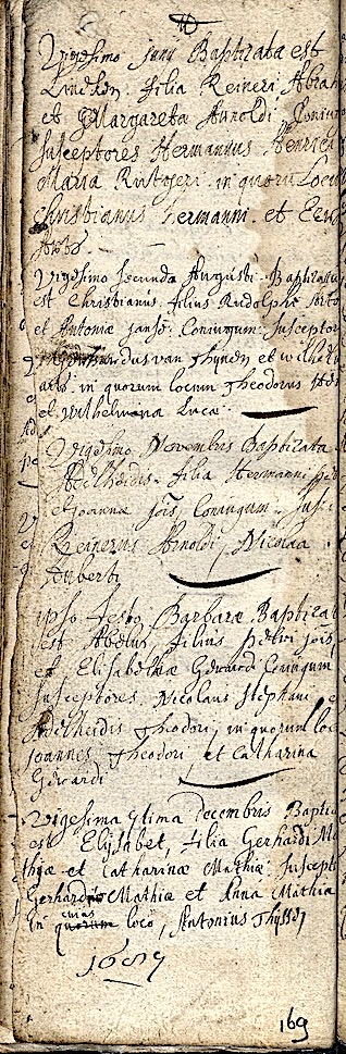 BHIC, DTB Beers RK doopb. 1610-1691, inv. nr. 19 folio/pag. 169