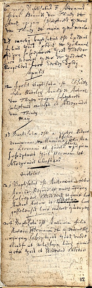 BHIC, DTB Beers RK doopb. 1610-1691, inv. nr. 20 folio/pag. 12
